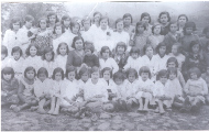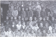 Estas dos fotografías podrían ser las más antiguas que se conservan de Dólar. En ellas están escolares, al aire libre con sus maestros.